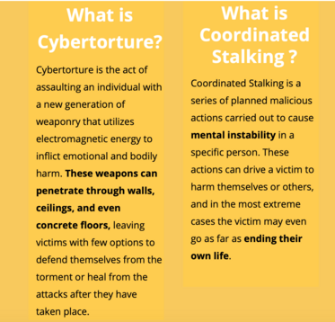This website blows the whistle on this heinous, covert, high-tech vicious targeting program wide open. It reveals what THEY are really doing AND, as shown throughout, it is confirmed by highly credible people nationwide and all over the world. They also viciously discrediting targets with outright lies and strategic character assassination.